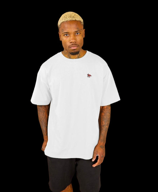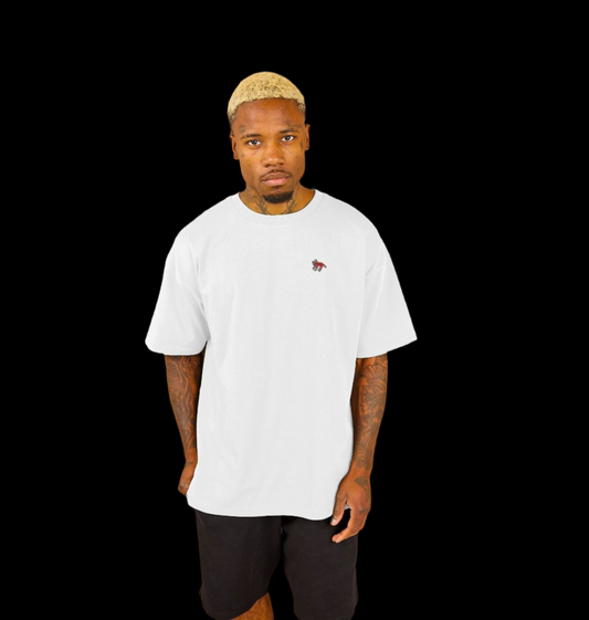 "MORE" MEN'S OVERSIZED TEE (FRONTAL GRAPHIC) IN WHITE