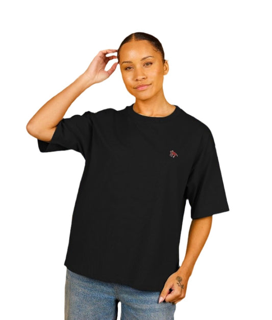 "ALL WE HAVE IS NOW" WOMEN'S OVERSIZED TEE (REVERSE GRAPHIC) IN BLACK