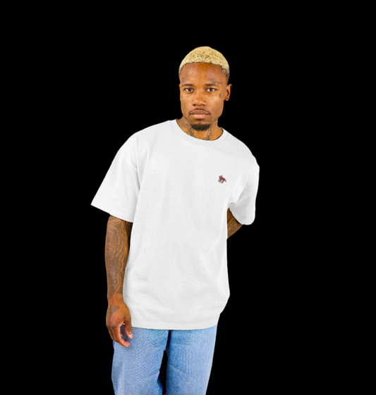 "NO RISK, NO STORY" MEN'S OVERSIZED TEE (REVERSE GRAPHIC) IN WHITE