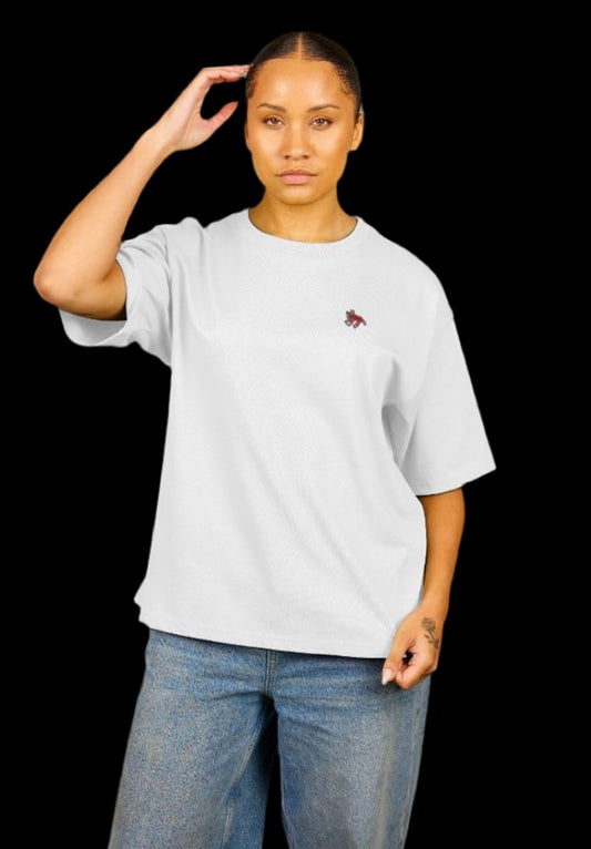 "MORE" WOMEN'S OVERSIZED TEE (FRONTAL GRAPHIC) IN WHITE
