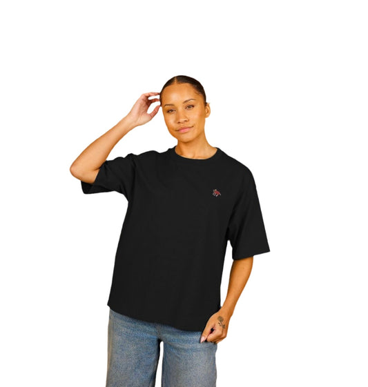 "MORE" WOMEN'S OVERSIZED TEE (FRONTAL GRAPHIC) IN BLACK